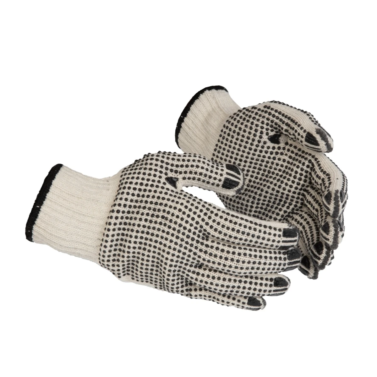 7G adīti, bezšuvju, dabīgi balti darba cimdi ar divpusēju, melnu PVH punktējumu pirkstu un plaukstas...